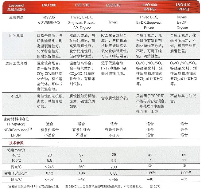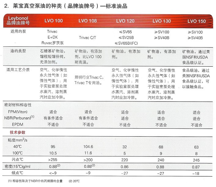 對大部分應(yīng)用,萊寶真空泵使用Leybonol品牌標準礦物油基油品,油牌號為LVO 1XX,具有適宜的化學(xué)穩(wěn)定性和熱穩(wěn)定性,耐水解,與密封材料的相容性很好。