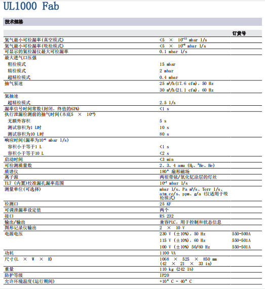 UL1000 Fab將工廠環(huán)境系統(tǒng)內(nèi)的易用性、泄漏檢測效率和機動性作為優(yōu)先考慮因素,在整個測量范圍內(nèi)都能做出極快的漏率響應。UL1000 Fab采用經(jīng)過優(yōu)化的真空結構,兼具高速氦抽速與高進氣口壓強的優(yōu)點,漏率穩(wěn)定性降低至前所未有的5 × 10-12 atm cc/s。專有軟件I?CAL (漏率智能算法)解決了低漏率范圍內(nèi)響應時間較長的問題,因為UL1000 Fab能夠對所有漏率范圍快速做出響應。通過增加TC1000測試室附件,UL1000Fab氦氣泄漏檢測儀能夠簡單、快速、精確地測試密封件,例如集成電路組件、石英晶體和激光二極管(根據(jù)MIL-STD 883標準,方法1014)。