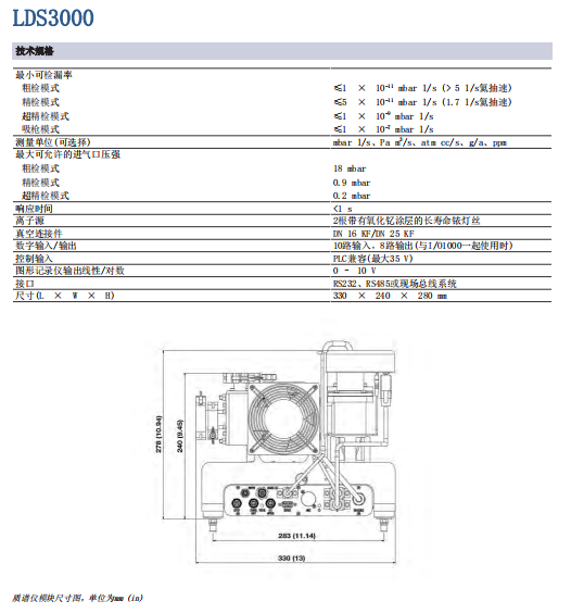 為其檢漏系統(tǒng)產(chǎn)品的成功歷程揭開(kāi)了新的篇章。作為L(zhǎng)DS2010的繼承者,為測(cè)量結(jié)果的精度,重現(xiàn)性和檢漏速度成功地設(shè)定了新的標(biāo)準(zhǔn)。LDS3000極為輕便。330 × 240 × 280 mm(13 × 9.45 × 11.1 in.)的小巧尺寸使其能夠輕松集成到檢漏系統(tǒng)中。更重要的是,由于無(wú)需19英寸的控制模件并改進(jìn)了電纜布線,進(jìn)一步降低了安裝所需的空間和費(fèi)用。此外,為便于操作,可提供觸摸屏和現(xiàn)場(chǎng)總線連接件等選項(xiàng)
