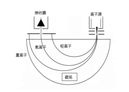 氦質(zhì)譜檢漏儀是一種專門用于檢測氦氣的質(zhì)譜儀,是一種高精度的氣體分析儀器,可以檢測極小濃度的氦氣。其內(nèi)部有一套高真空系統(tǒng),以及一個與其相連的質(zhì)譜室。外界的氣體進(jìn)入到檢漏儀質(zhì)譜室后,首先會在離子源處被電離,產(chǎn)生離子。氣體離子被加速后進(jìn)入磁場,其路徑會被偏轉(zhuǎn),由于不同的離子荷質(zhì)比不同,偏轉(zhuǎn)半徑也不同。在合適的地方設(shè)置一個狹縫,就可以僅讓示蹤氣體(氦氣)的離子通過并到達(dá)收集極。收集極得到的離子流信號和進(jìn)入檢漏儀的氦氣量多少,即泄露率的大小成正比。通過測量該信號,就可以測量泄漏率。